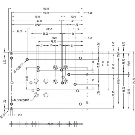 Metallplattenhalterung bestehend aus Komponentencode DRP-01 zum Einbau kompatibler Schaltnetzteile in Schalttafeln und Steuergeräte.