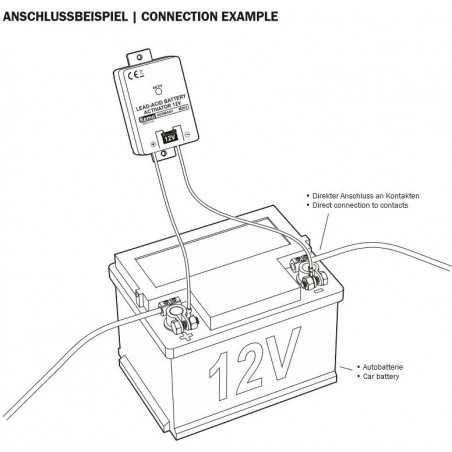 Actúa contra la sedimentación del sulfato de plomo y aumenta así la vida de la batería del coche. El sulfato de plomo se elimina activamente y se evita la sedimentación mediante pulsos de corriente fuertes y cortos, respectivamente. Con pantalla LED.