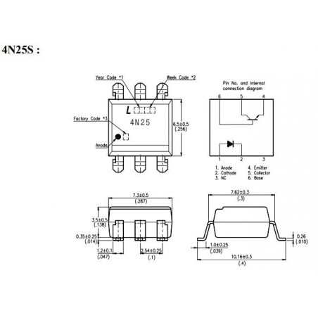 10 PIEZAS 4N25S LITEON Optoacoplador SMD transisistor isol. 2,5 kV